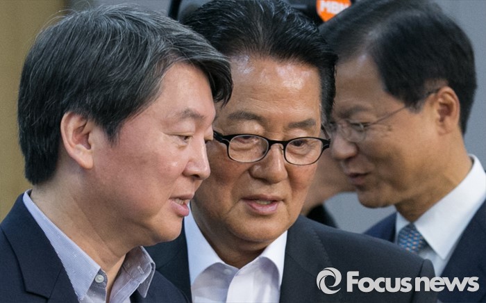 (서울=포커스뉴스) 안철수(왼쪽부터) 국민의당 상임공동대표, 박지원 원내대표, 천정배 공동대표가 10일 오전 서울 여의도 국회 의원회관에서 열린 당선자 총회 및 3차 집중워크숍에 참석하고 있다.