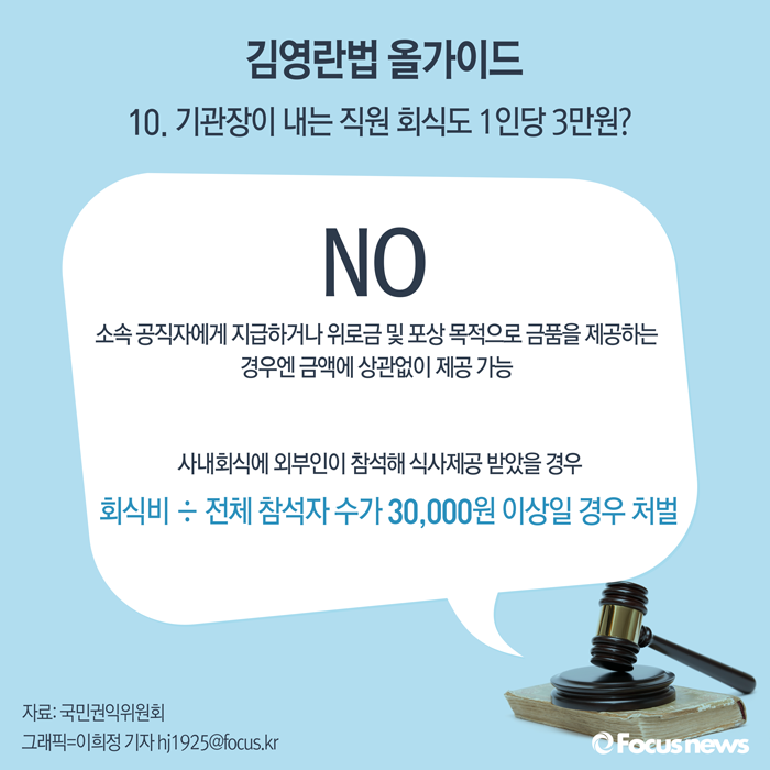 | △ [그래픽] 김영란법 올가이드 10. 기관장이 내는 직원 회식도 1인당 3만원? |