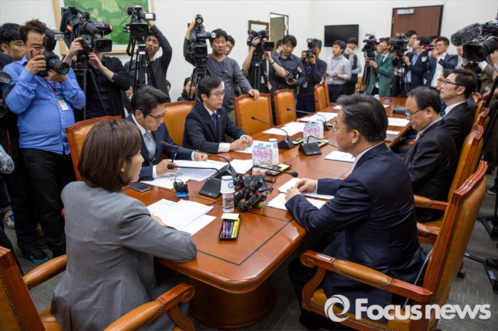(서울=포커스뉴스) 나경원 국회 외교통일위원장이 10일 오후 서울 여의도 국회에서 홍용표 통일부 장관에게 북한 노동당 관련 현안보고에 앞서 모두발언 하고 있다.