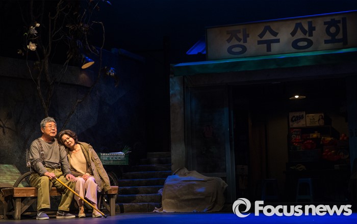 (서울=포커스뉴스) 10일 오후 서울 종로구 동숭아트센터에서 열린 연극 '장수상회' 프레스콜에 참석한 배우 백일섭, 김지숙이 극의 주요장면을 시연하고 있다.