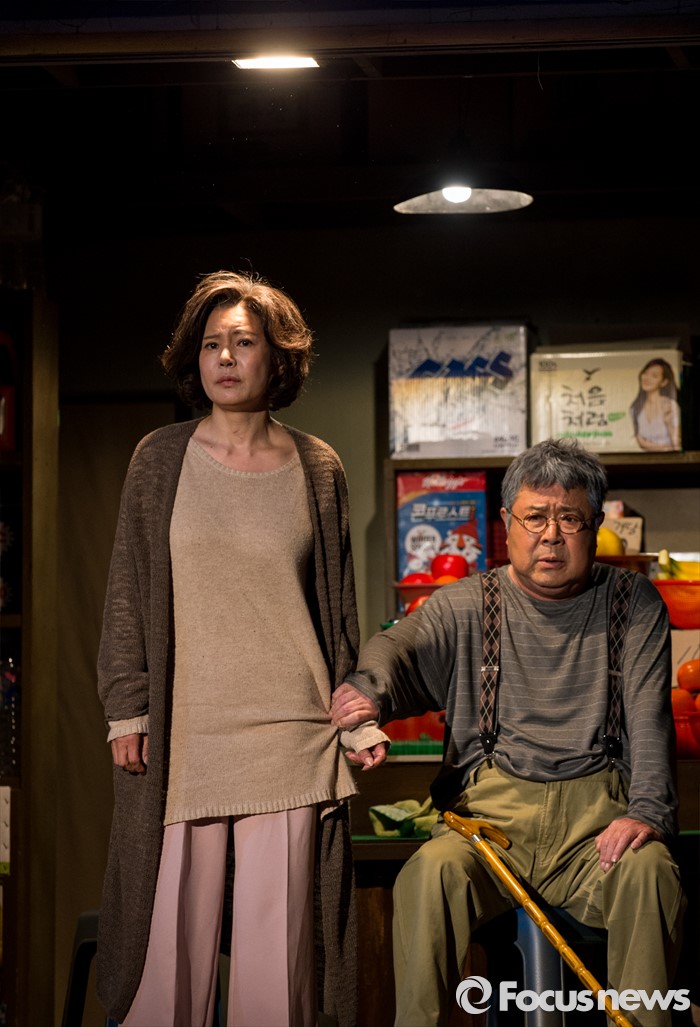 (서울=포커스뉴스) 10일 오후 서울 종로구 동숭아트센터에서 열린 연극 '장수상회' 프레스콜에 참석한 배우 백일섭, 김지숙이 극의 주요장면을 시연하고 있다.