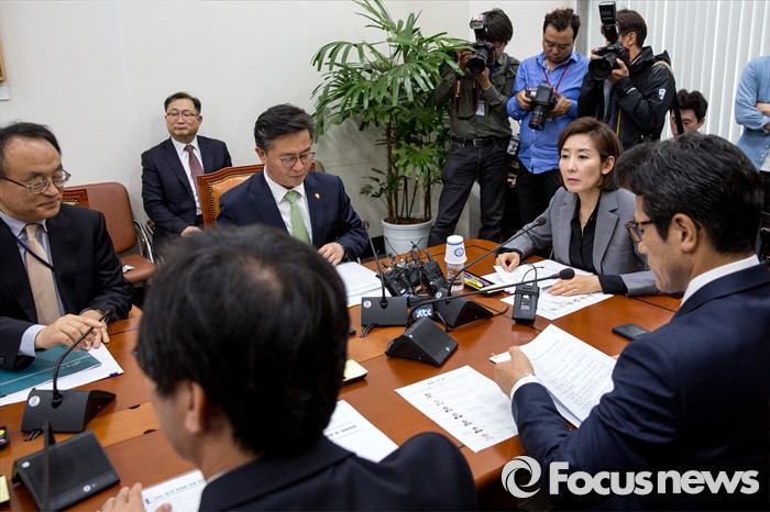 (서울=포커스뉴스) 나경원 국회 외교통일위원장이 10일 오후 서울 여의도 국회에서 홍용표 통일부 장관에게 북한 노동당 관련 현안보고에 앞서 모두발언 하고 있다.