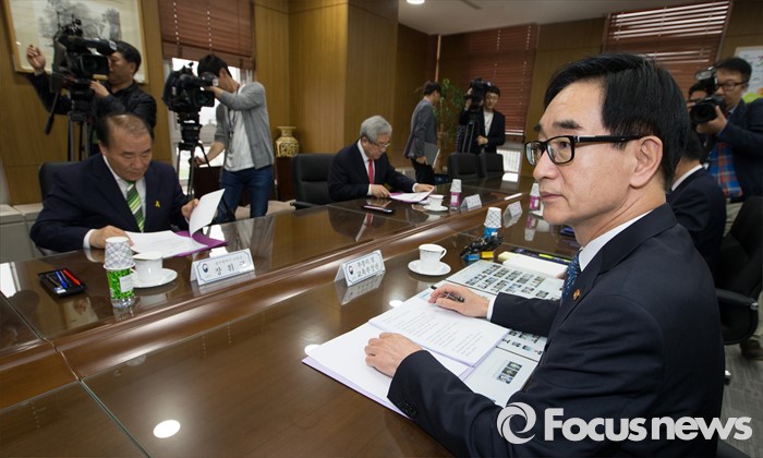(세종=포커스뉴스) 이준식(오른쪽) 사회부총리 겸 교육부장관이 10일 오후 세종시 정부세종청사 교육부 중회의실에서 열린 전국시도교육감협의회 회장단 간담회에 참석해 인사말을 하고 있다.