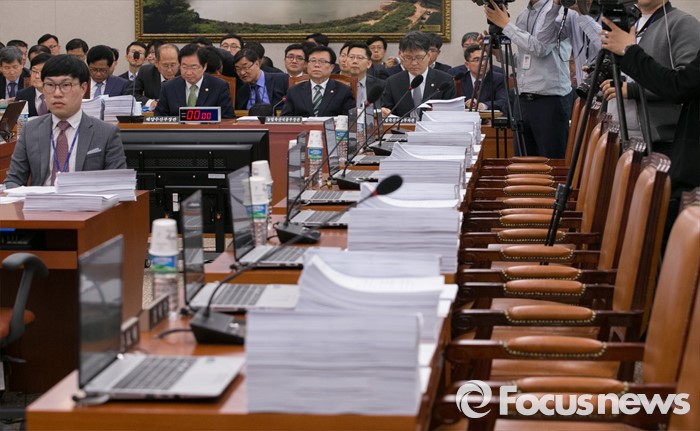 (서울=포커스뉴스) 10일 오후 서울 여의도 국회에서 열린 농림축산식품해양수산위원회 전체회의에 불참한 새누리당 의원들의 빈 자리가 보이고 있다. 이날 회의는 세월호 특별법 개정안 내용 중 특조위 활동 기간 연장과 관련 이견으로 여당 의원들이 불참한 채 진행됐다.