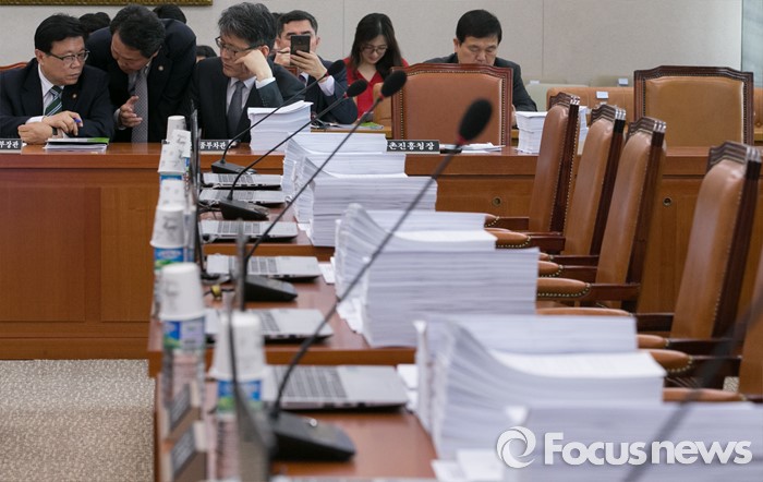 (서울=포커스뉴스) 10일 오후 서울 여의도 국회에서 농림축산식품해양수산위원회 전체회의에 앞서 이동필(왼쪽부터) 농림축산식품부 장관, 여인홍 차관, 이양호 농촌진흥청장이 대화하고 있다. 이날 회의는 세월호 특별법 개정안 내용 중 특조위 활동 기간 연장과 관련 이견 등으로 여당 의원들이 불참한 채 진행됐다.