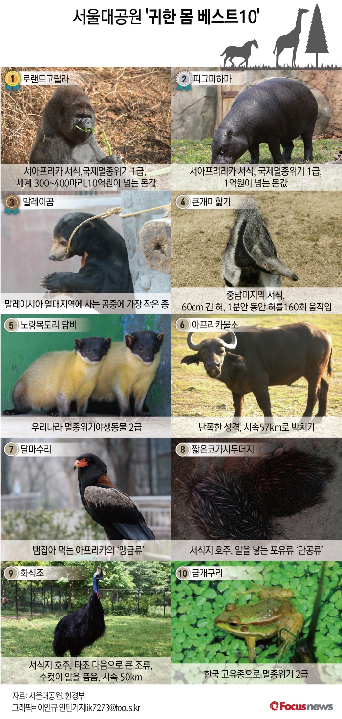 △ [그래픽] 서울대공원 '귀한 몸 베스트10'