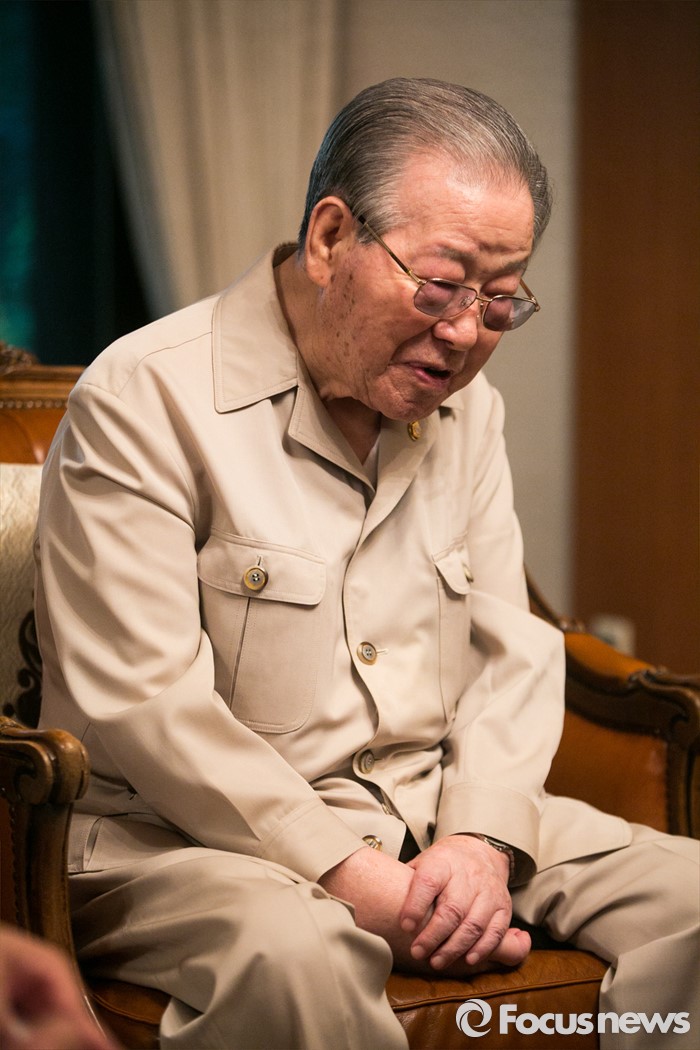 (서울=포커스뉴스) 김종필 전 총리가 10일 오후 서울 중구 자택을 방문한 정진석 새누리당 원내대표와 환담을 하고 있다.