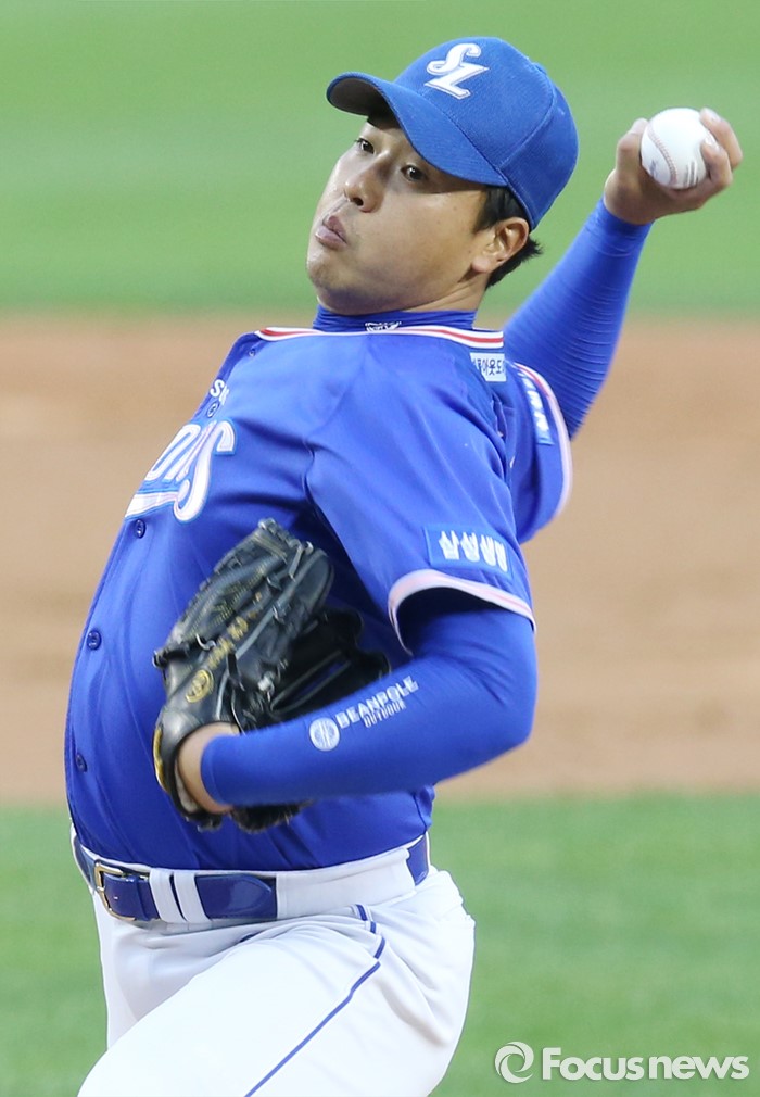 (서울=포커스뉴스) 10일 서울 잠실구장에서 열린 2016 프로야구 삼성-LG 경기에서 1회말 삼성 선발투수 김기태가 투구하고 있다.