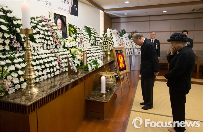 (서울=포커스뉴스) 10일 오후 서울 송파구 서울아산병원 장례식장에 마련된 故 강영훈 전 국무총리의 빈소에서 조문객들이 조문하고 있다.
