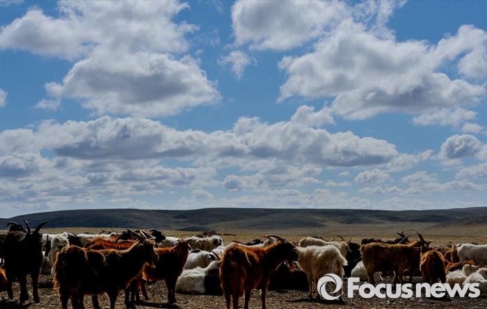 (바가 가즈링 촐로/몽골=포커스뉴스) 바가 가즈링 촐로에는 을러가는 구름과 구름 숫자만큼 많은 염소와 양들이 시간이 정지된 것처럼 여유롭다.