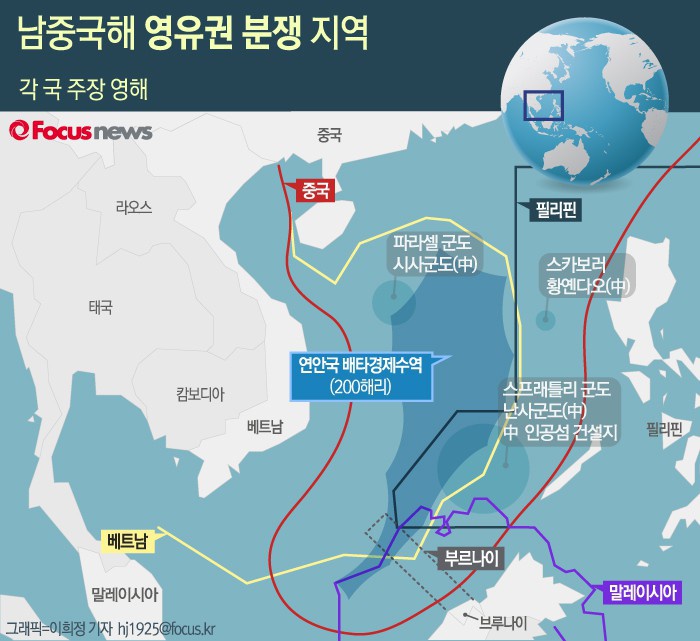 △ [그래픽] 남중국해 영유권 분쟁지역
