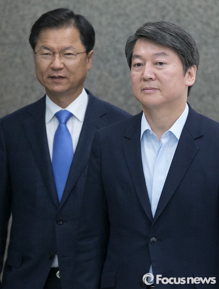 (서울=포커스뉴스) 11일 오전 서울 여의도 국회에서 열린 국민의당 최고위원회의에 안철수(오른쪽) 상임공동대표와 천정배 공동대표가 참석하고 있다.