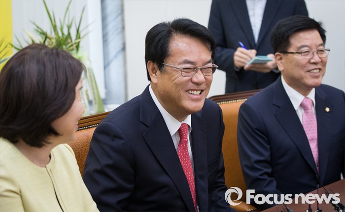 (서울=포커스뉴스) 정진석(오른쪽) 새누리당 원내대표가 11일 오전 서울 여의도 국회에서 심상정 정의당 상임대표를 예방해 대화하고 있다.