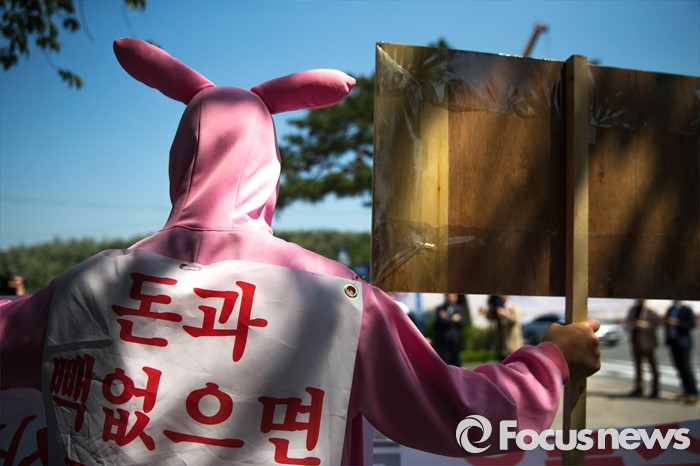 (서울=포커스뉴스) 11일 오전 서울 관악구 서울대학교 앞에서 사시존치를위한고시생모임 회원들이 교육부의 전수조사 결과 발표를 규탄하며 시위를 하고 있다.
