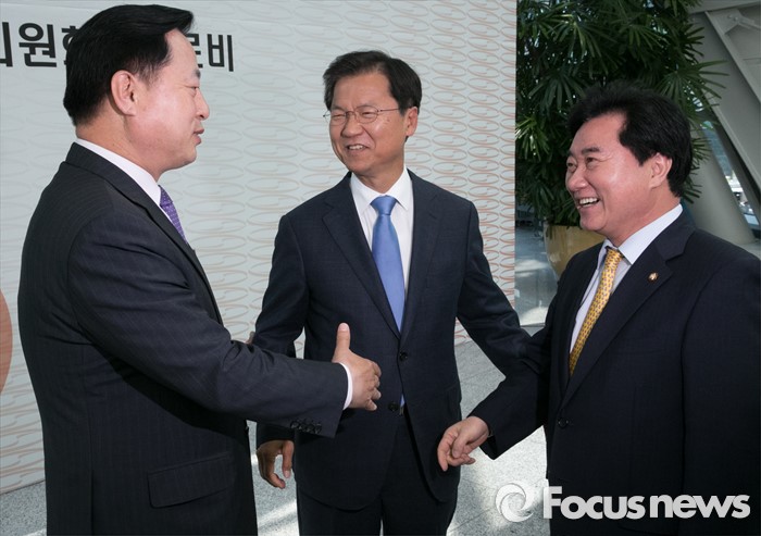 (서울=포커스뉴스) 11일 오후 서울 여의도 국회 의원회관에서 열린 20대 국회 초선의원 의정연찬회 오찬에 참석한 이석현(오른쪽부터) 국회 부의장, 천정배 국민의당 공동대표, 김두관 더불어민주당 당선인이 대화하고 있다.