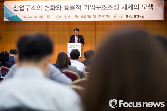 그는 "사업측면을 주로 반영하는 매출액·영업이익율이 구조조정 성공 확률과 밀접한 연관성이 있다는 사실은 현재 구조조정이 재무적 측면에서만 이뤄졌음을 시사한다"며 "기업 구조조정 과정에서 '사업 구조조정'이 효과적으로 이뤄져야 성공 비중이 높아질 것"이라고 주장했다.(서울=포커스뉴스) 신성환 한국금융연구원장이 11일 오후 서울 중구 전국은행연합회관에서 열린 '산업구조의 변화와 효율적 기업구조조정 체제의 모색 세미나'에 참석해 인사말을 하고 있다. 2016.05.11 조종원 기자 <자료제공=한국금융연구원><자료제공=한국금융연구원>