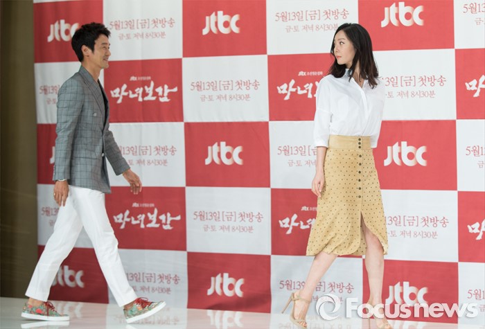 (서울=포커스뉴스) 11일 오후 서울 영등포구 타임스퀘어 아모리스홀에서 열린 JTBC 금토드라마 '마녀보감' 제작발표회에 참석한 배우 이성재(왼쪽)와 염정아가 포토타임을 위해 이동하고 있다.