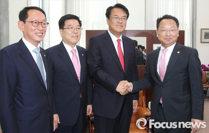 유 부총리는 이날 오전 새누리당의 정진석 원내대표·김광림 정책위의장·김도읍 원내수석부대표 등 신임 원내지도부, 더불어민주당의 이춘석·박완주 원내수석부대표, 국민의당의 김성식 정책위의장·김관영 원내수석부대표를 예방했다.