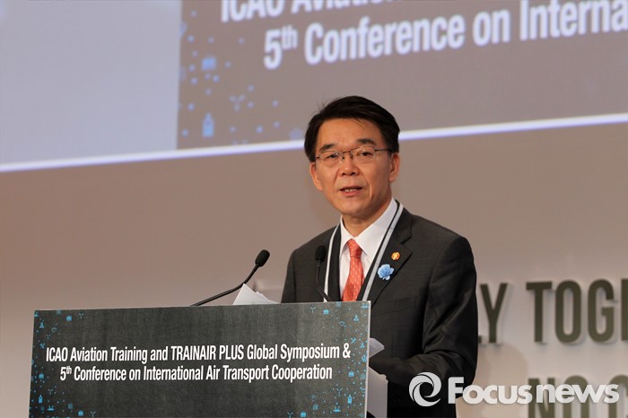(서울=포커스뉴스) 강호인 국토교통부장관이 11일 서울 콘래드호텔에서 열린 제5차 국제항공협력컨퍼런스 & ICAO TRAINAIR PLUS 심포지엄에 참석해 인사말을 하고 있다. <사진제공=국토교통부>