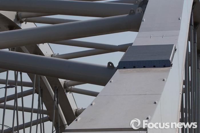 (서울=포커스뉴스) 11일 오후 서울 양화대교 아치위에 고공시위, 투신자살 등을 예방하기 위해 롤러로 된 오름방지 시설물이 설치되어 있다.