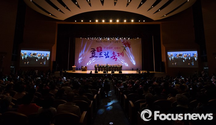 (서울=포커스뉴스) 11일 오후 서울 강남구 코엑스에서 열린 제44회 어버이날 기념 효드림 축제에 참석한 어르신들이 공연을 즐기고 있다.