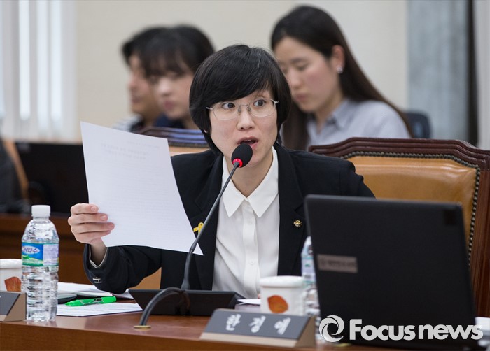 (서울=포커스뉴스) 장하나 더불어민주당 의원이 11일 오후 서울 여의도 국회에서 가습기 살균제 사태와 관련해 환경부 장관에게 질의하고 있다.