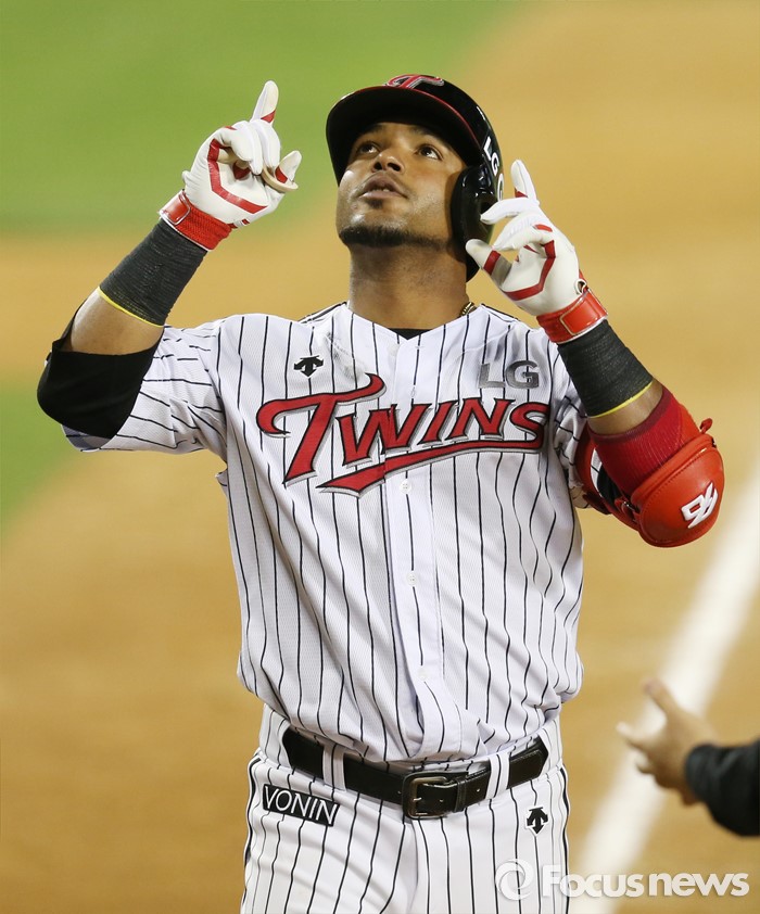 (서울=포커스뉴스) 11일 서울 잠실구장에서 열린 2016 프로야구 삼성-LG 경기 5회말 LG 히메네스가 시즌 10호 좌월 솔로 홈런을 치고 홈인하며 세리머니를 하고 있다.