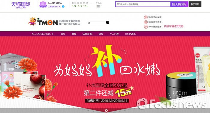 신현성 티켓몬스터 대표는 “티몬이 빠르게 성장 중인 중국 역직구 시장에도 본격 진출한다”며 “특히 중국 최대의 플랫폼인 알리바바의 시스템을 직접 이용하는 만큼 화장품뿐 아니라 식품과 패션 등 국내의 다양한 상품이 중국시장에 빠르게 진출할 수 있도록 적극 돕겠다”고 말했다.알리바바 티몰에 문을 연 티몬관.<사진제공=티켓몬스터>
