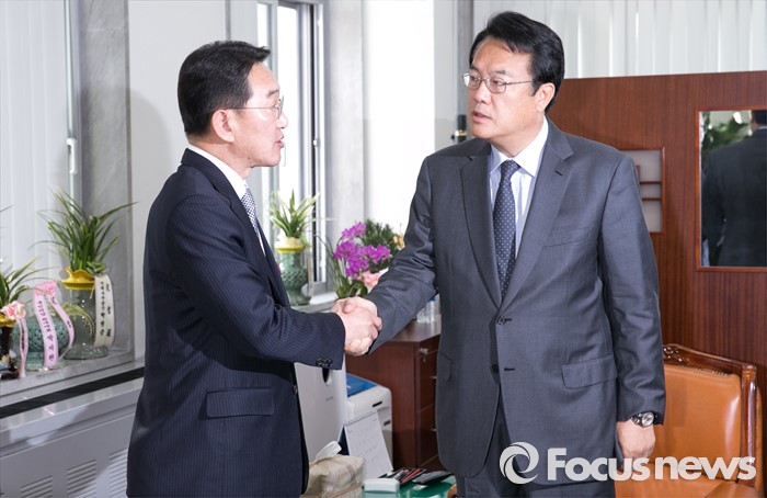 한편 현 정무수석의 국회 방문 하루 전인 11일에는 유일호 경제부총리 겸 기획재정부 장관과 이기권 고용노동부 장관이 원내 지도부를 만나 쟁점법안 처리를 호소했다.정진석(오른쪽) 새누리당 원내대표가 12일 오전 서울 여의도 국회를 방문한 현기환 청와대 정무수석과 만나 인사하고 있다. 2016.05.12 박동욱 기자