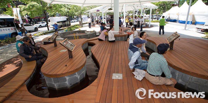 (대전=포커스뉴스) 유성온천문화축제를 하루 앞둔 12일 오전 대전 유성구 유성온천문화공원 족욕장을 찾은 시민들이 족욕을 하고 있다. 유성온천문화축제는 13일부터 15일까지 열리며 국내 최초로 한방족욕카페를 개장해 태양인과 태음인, 소양인, 소음인 사상체질별 맞춤 족욕장을 운영한다.