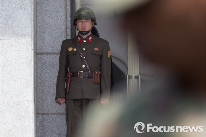 (파주=포커스뉴스) 빈센트 브룩스 신임 한·미연합사령관 겸 주한미군사령관과 이순진 합참의장이 12일 오후 경기도 파주시 판문점 공동경비구역(JSA)을 방문, 북한군 병사들이 미군과 남측 인원들을 주시하고 있다.