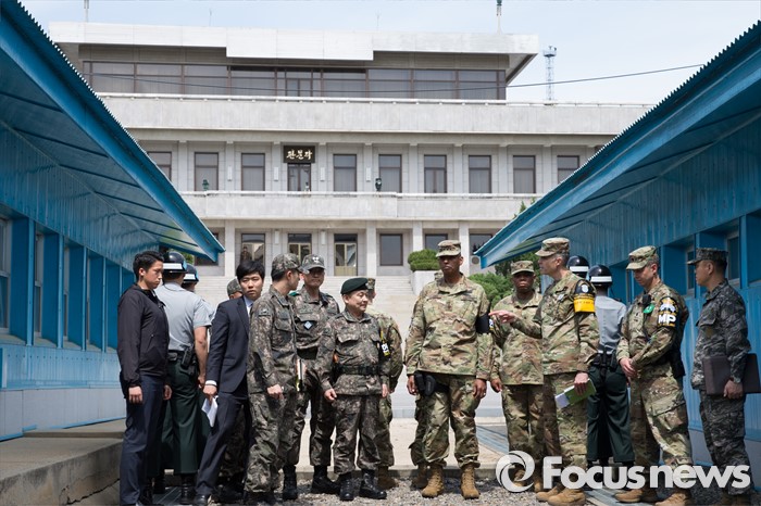 (서울=포커스뉴스) 빈센트 브룩스 신임 한미연합사령관과 이순진 합동참모본부 의장이 12일 함께 판문점 공동경비구역(JSA)를 방문해 대비태세를 점검하고 장병들을 격려했다.