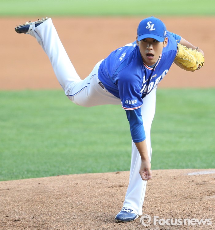 (서울=포커스뉴스) 12일 서울 잠실구장에서 열린 2016 프로야구 삼성-LG 경기에서 1회말 삼성 선발투수 윤성환이 투구하고 있다.