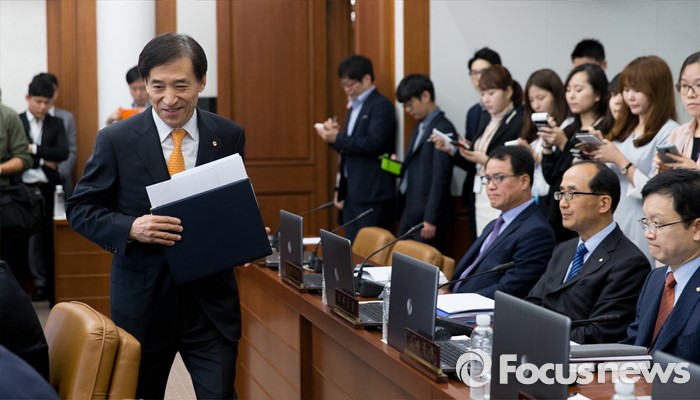(서울=포커스뉴스) 이주열 한국은행 총재가 13일 오전 서울 중구 남대문로 한국은행에서 열린 금융통화위원회에 참석하기 위해 입장하고 있다.