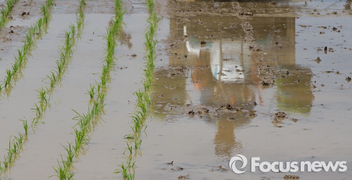 (청주=포커스뉴스) 13일 오후 충북 청주시 서원구의 한 논에서 농민이 이양기를 이용해 모내기를 하고 있다.