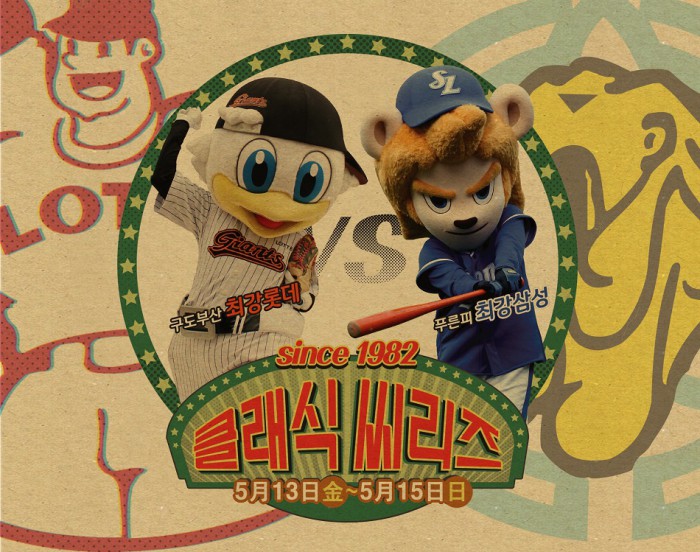 한편 13일 경기에는 롯데 마스코트 누리와 삼성 마스코트 블레오가 각각 시구자와 시타자로 나서 상생과 화합의 의미를 살린다. 마스코트 합동공연, 치어리더가 상대팀 응원단장에서 공연하는 교차 치어리딩 공연, 원정팀 공격 시 상대타자 소개영상 등이 펼쳐진다.프로야구 삼성과 롯데가 13일 대구구장 3연전 펼치는 '1982 클래식 씨리즈' 행사 포스터 이미지. <사진제공=롯데 자이언츠>