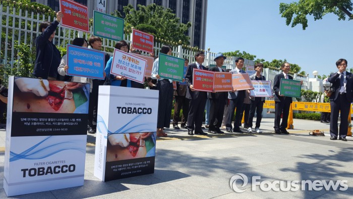 한국금연운동협의회는 13일 오후 서울 종로구 정부종합청사 정문 앞에서 기자회견을 열고 담뱃갑 경고그림의 상단 배치를 촉구했다.