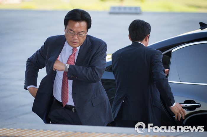 (서울=포커스뉴스) '박근혜 대통령과 여야 3당 원내지도부 회동'을 다녀 온 정진석 새누리당 원내대표가 회동 결과 브리핑을 하기 위해 13일 오후 서울 여의도 국회 본청을 들어서고 있다.