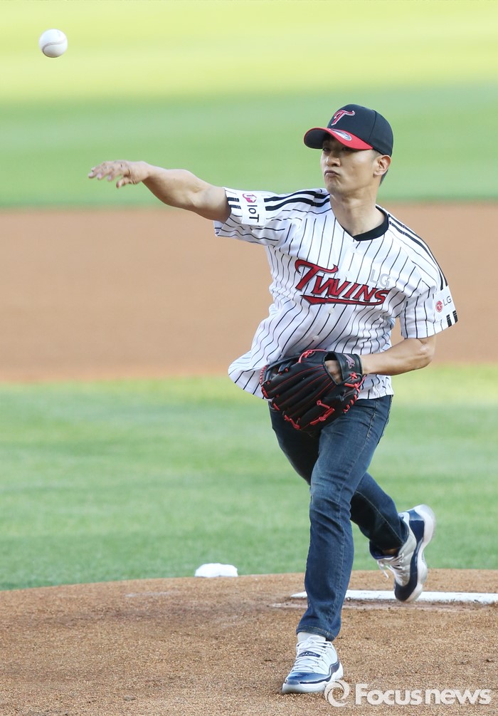 (서울=포커스뉴스) 13일 서울 잠실구장에서 열린 2016 프로야구 SK-LG 경기에서 클래지콰이의 알렉스가 투수 마운드를 밟고 시구하고 있다.