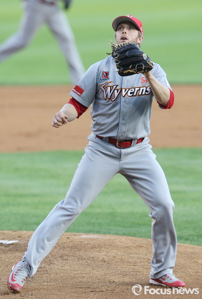 | △ 수비하는 SK 투수 켈리 |