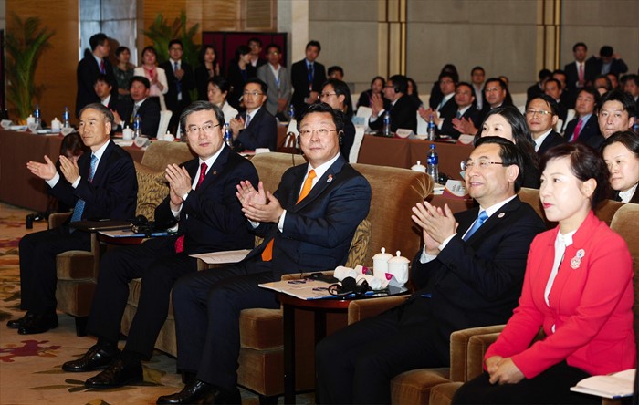 (서울=포커스뉴스) 주형환 산업통상자원부 장관이 13일 중국 크라운플라자호텔 회의실에서 후허핑(胡和平) 섬서성장과 한중 양국 대표단 및 현지기업인 등 200여명이 참석한 가운데 열린 한-섬서성 경제협력협의회 개막식에 참석하고 있다. <사진제공=산업통상자원부>