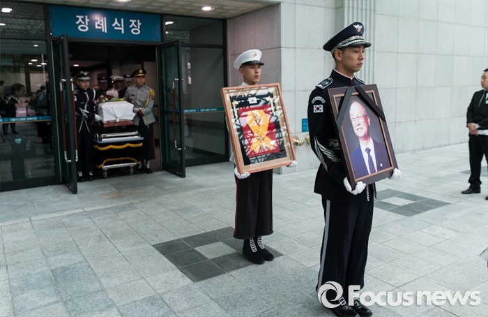(서울=포커스뉴스) 14일 오전 서울 송파구 아산병원 장례식장에서 강영훈 전 국무총리의 발인식이 엄수되고 있다.
