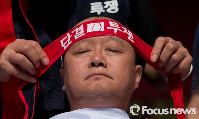 | △ 김문호 위원장, 삭발 투쟁 |