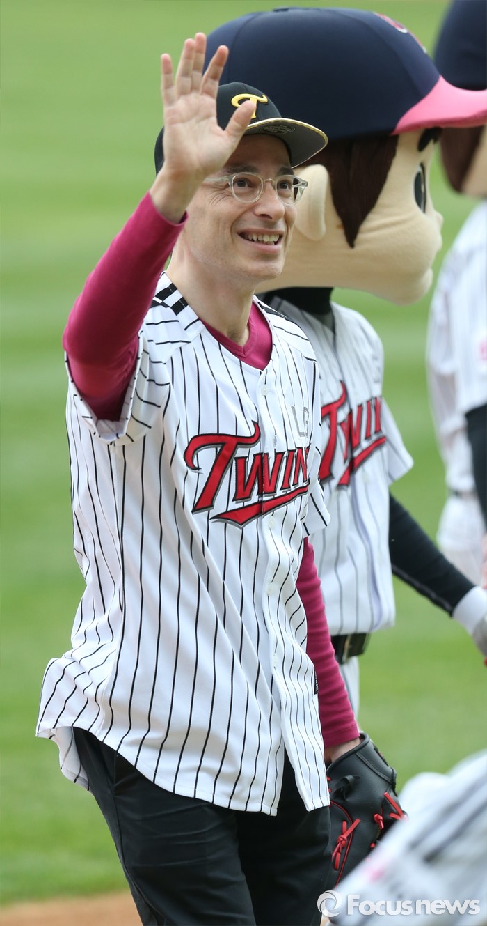 (서울=포커스뉴스) 8일 서울 잠실구장에서 열린 2016 프로야구 SK-LG 경기에 앞서 프랑스 소설가 베르나르 베르베르가 시구후 관중에게 손을 흔들며 퇴장하고 있다.