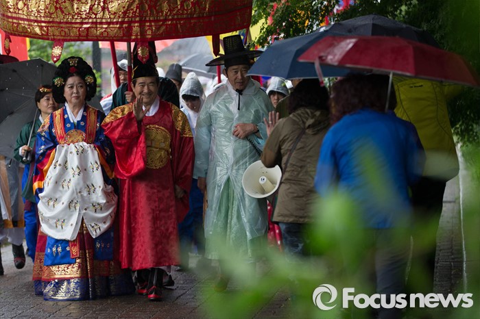 (서울=포커스뉴스) 세종대왕 탄신 619주년인 15일 오후 서울 종로구 경복궁 일대에서 세종대왕 어가행렬이 재현되고 있다.