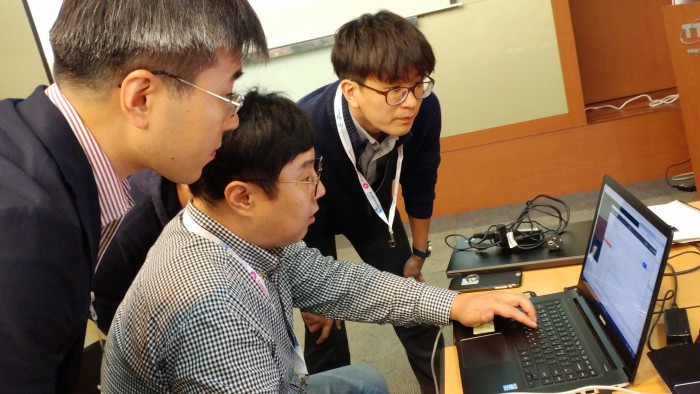 서재용 LG유플러스 IoT개발담당은 “홈 IoT를 시작으로 현재까지 20여종이 넘는 IoT 기기를 출시했으며, 지난 1월 원M2M 플랫폼 상용화와 상용 서비스 제공을 통해 지속적인 IoT 시장 선도와 함께 생태계를 만들어 가고 있다”고 말했다.LG유플러스가 한국정보통신기술협회에서 열린 원M2M 상호호환성 국제 행사에서 IoT 플랫폼과 연결되는 IoT 기기 간 호환성 테스트를 하고 있다.<사진제공=LG유플러스>