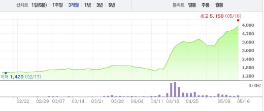 16일 오전 10시1분 현재 뉴보텍은 전일 대비 4.77%(215원) 상승한 4725원에 거래되고 있다. 뉴보텍은 9일부터 13일까지 연속 상승세를 기록하며 최근 뚜렷한 상승 곡선을 보이고 있다. 이는 4월 초 주가(1945원)와 비교했을 때 2.42배 상승한 수치다.
