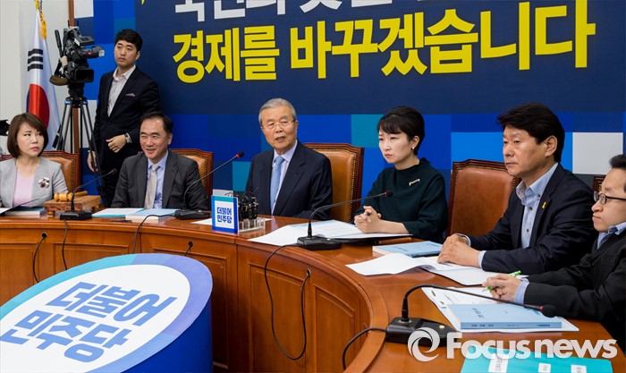 (서울=포커스뉴스) 16일 오전 서울 여의도 국회에서 열린 더불어민주당 1차 조직강화특위회의에 참석한 김종인(앞줄 왼쪽 세번째) 비상대책위원회 대표가 모두발언 하고 있다.