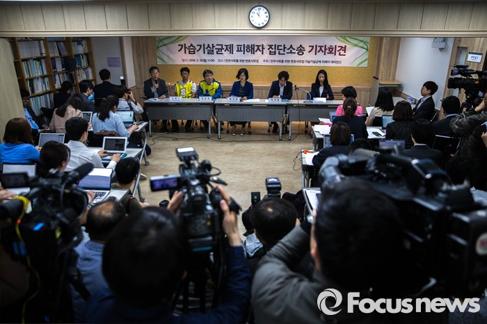 (서울=포커스뉴스) 16일 오전 서울 서초구 민변 대회의실에서 가습기살균제피해자 공동소송대리인단의 집단소송 소장 접수 기자회견이 열리고 있다.