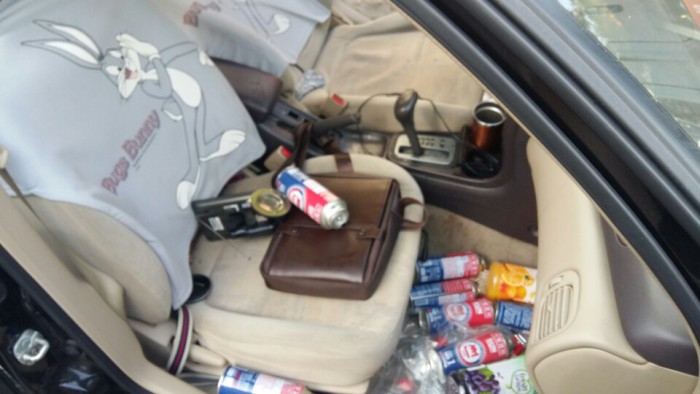 경찰은 검거 당시 김씨의 차량 내부와 트렁크에서 발견된 부탄가스 22개 중 16개가 비어있어 김씨가 가스 흡입 후 빈 통을 버리지 않은 것으로 보고 있다.부탄가스를 흡입하며 운전한 혐의를 받고 있는 김씨의 차량에서 발견된 부탄가스. <사진제공=서울 강북경찰서>